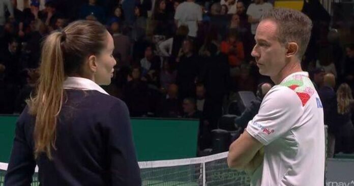 During the break, umpire Marijana Veljovic communicated with the players, while Italian captain Filippo Volandri offered advice to Cobolli. As the fan was escorted out of the stands, Parmar noted the potential delay in the game for the person’s safe removal.
